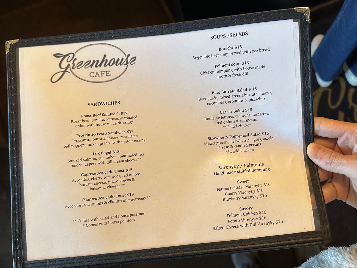 Greenhouse Cafe & Catering Menu
